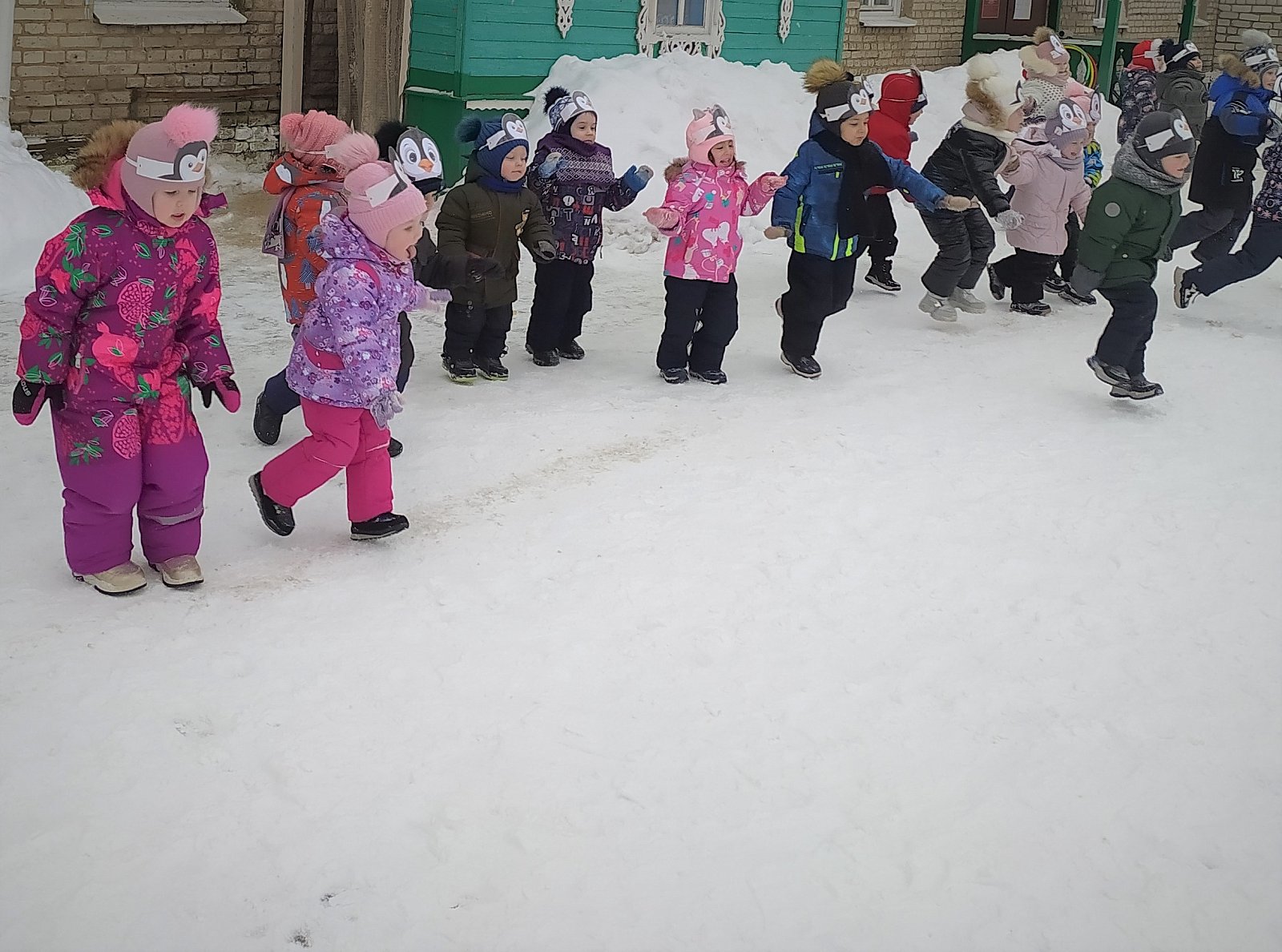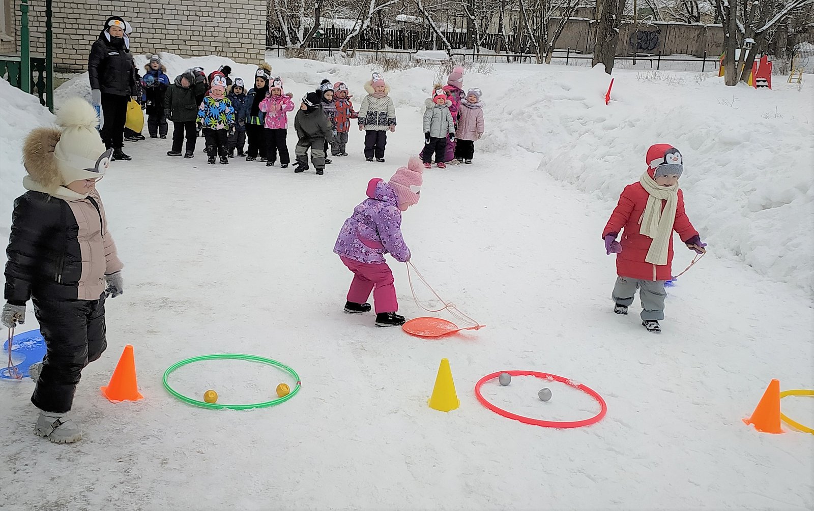 В конце недели спорта и здоровья прошли спортивные праздники в младшей группе "На стадионе льдина соревнуются пингвины", в старшей группе "Фестиваль зимних видов спорта"