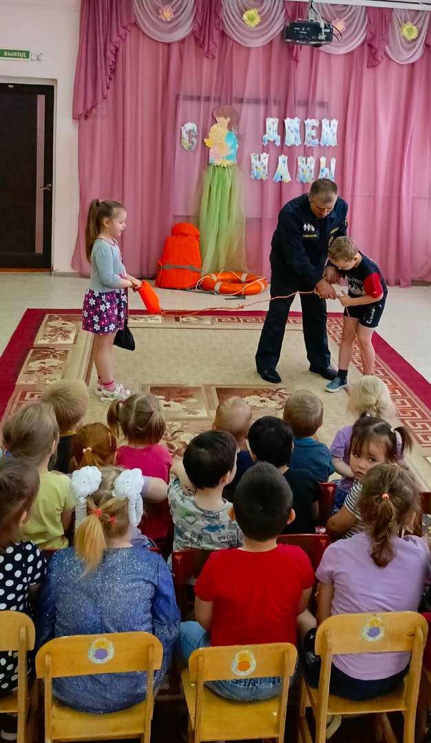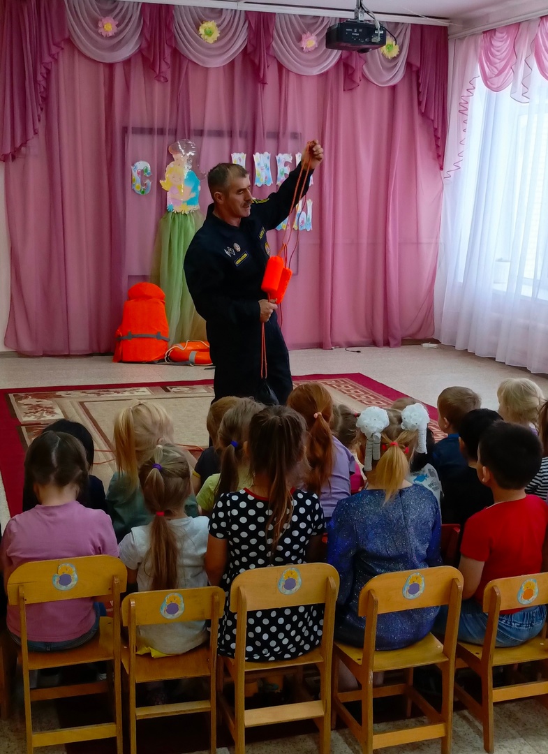 21 ноября в нашем детском саду состоялась встреча с сотрудником ГИМС МЧС Собинского района. В целях предотвращения несчастных случаев на льду в осенне-зимний период государственный инспектор по маломерным судам инспекторского участка №2 г.Собинка ФКУ «Центр ГИМС МЧС России» Алиев Гасан Гасанбекович провел беседу "Осторожно, тонкий лёд". Во время беседы ребята повторили основные правила безопасного поведения на водных объектах, что нужно делать, если они стали свидетелями несчастного случая на льду. Гасан Гасанбекович провел для ребят мастер-класс: учащиеся пробовали оказать первую помощь пострадавшим на воде, узнали правильное название спасательных средств.