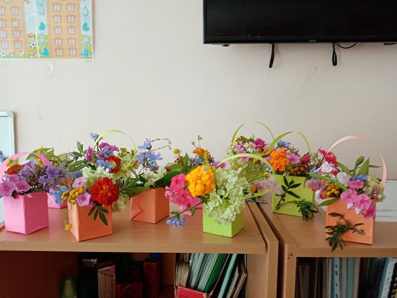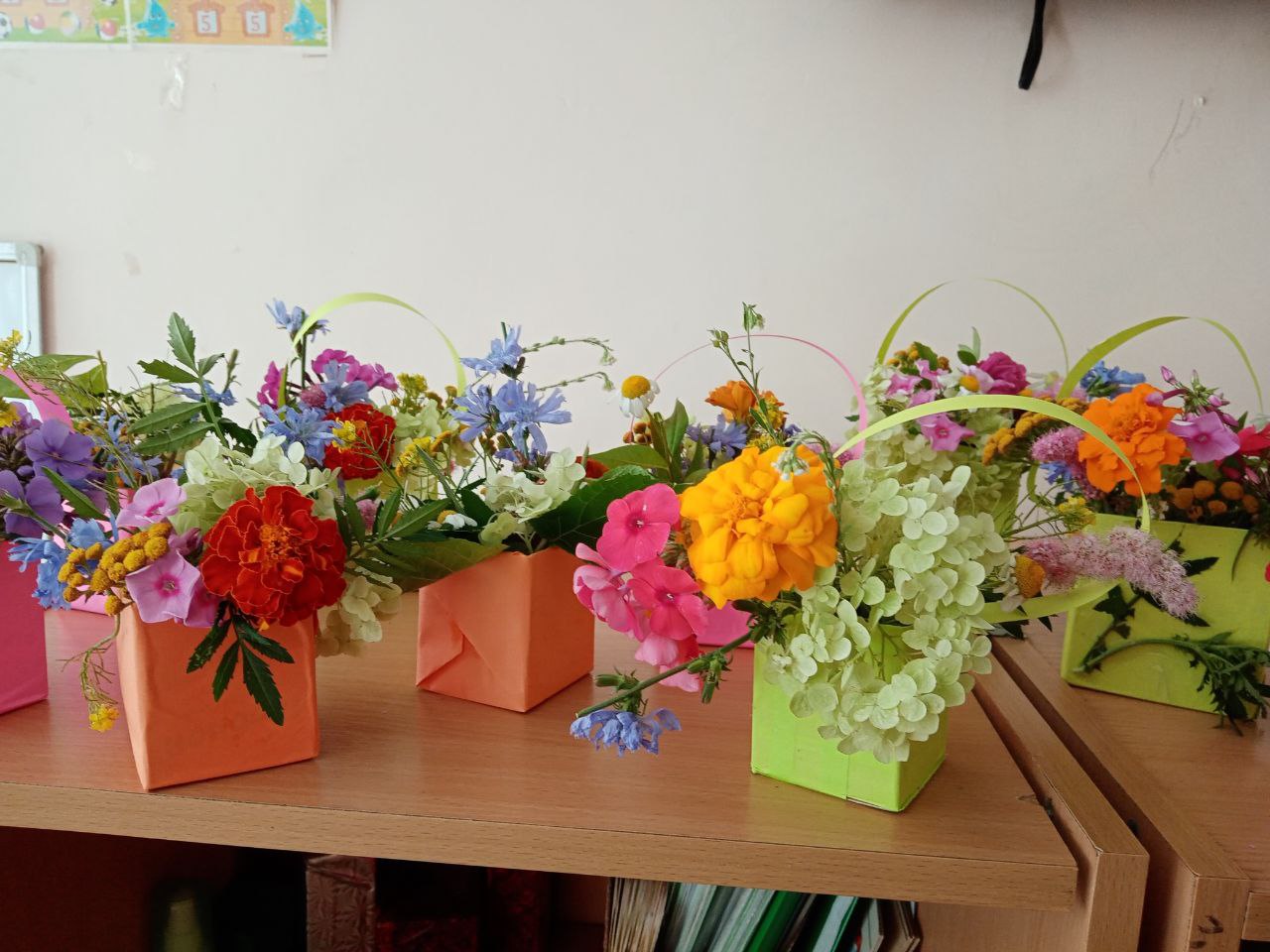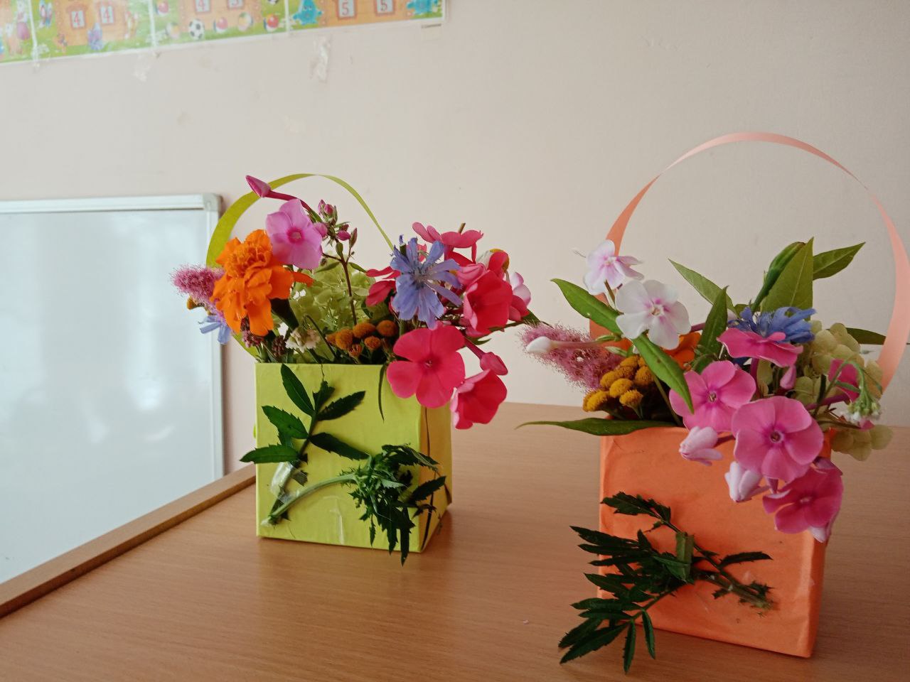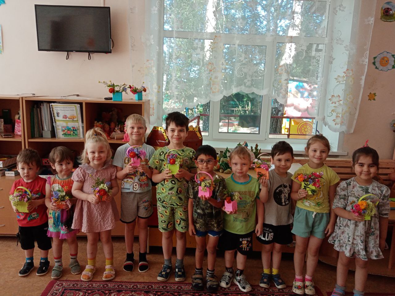 Мальчики и девочки тоже попробовали себя в роли флористов. Тем более, что летнее изобилие растительности даёт большой простор для фантазии и возможность придумать разные варианты композиций. Ребята сами выбирали природный материал: цветы, листья, травы, веточки, плоды деревьев и кустарников, ягоды. Из всего этого флористического разнообразия получились интересные композиции и цветочные букеты, которые стали украшением группы.