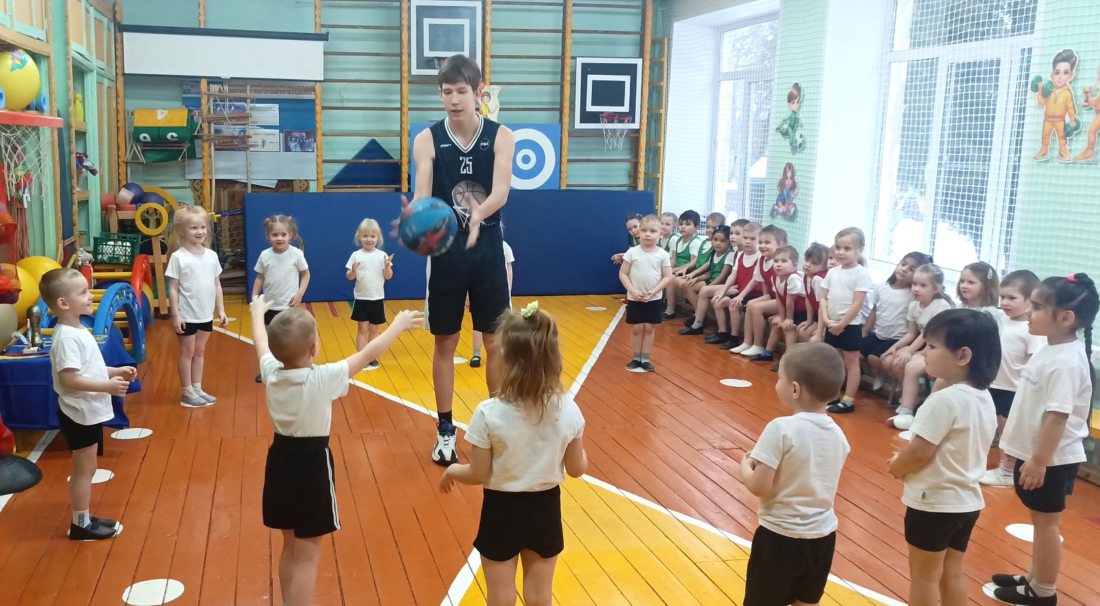 Артем показал мастер-класс по игре в баскетбол; рассказал ребятам про историю баскетбола; поделился своими достижениями; показал основные приемы игры; оценил игровые навыки наших воспитанников и конечно, поиграл с ребятами в игры с баскетбольным мячом! ????