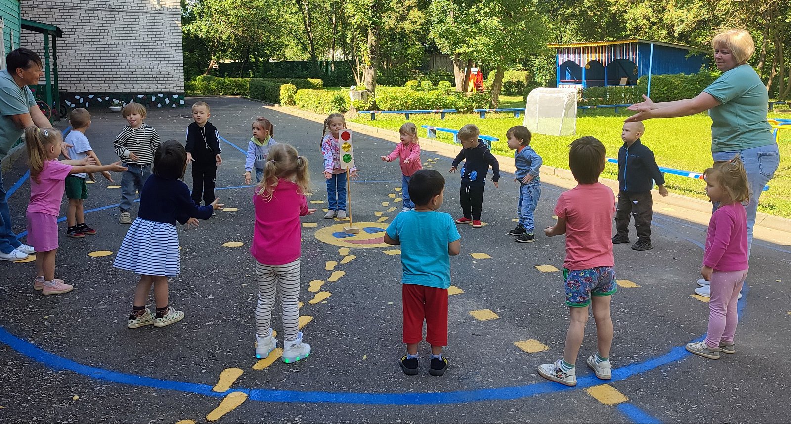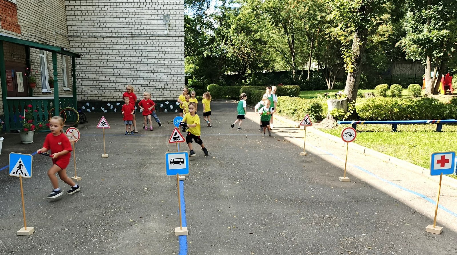 Дети играли в игры «Красный, жёлтый и зелёный», участвовали в эстафетах «Внимательный водитель», «Собери светофор», «Пешеходный переход» и т.д., читали стихи о сигналах светофора, а так же называли все знаки, которые были развешаны в стране дорожных знаков. Ребята с удовольствием отгадывали загадки о дорожных знаках.